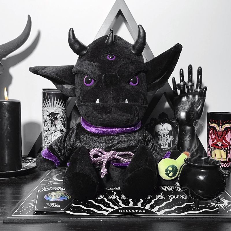 Das perfekte Killstar Kreeptures um die tödlichsten Tinkturen selber herzustellen. Beschwöre dich selbst zum Kuscheln mit dem magischen Gothic Plüschtier und denk dir neue Zaubersprüche aus. Der Killstar "Sorcerer" Kreeptures ist mit viel Hokuspokus gefüllt und wird deinen Alltag mit Magie anreichern. Lass das Mitglied der Killstar Kreeptures Familie nie wieder los, sondern halt den Gesellen der Unterwelt ganz fest im Arm. Triff den "Sorcerer", denn er ist die optimale Mischung aus Magie und Schattengestalt. Mit einer Größe von 30cm und aus Ultra weichem Plüschfell erschaffen, ist das Gothic Stofftier der perfekte Partner, um deine Zaubersprüche zu sprechen. Ausgestattet mit einer super flauschigen Robe und drei Kunstlederhörnern bietet der kleine Plüschdämon Kuschelspaß und Aufsehen gleichermaßen. Mit den drei diabolischen, violetten Augen am Kopf, birgt er den perfekten Rundumblick gegen alle Situationen. Und sein kleines Giftfläschchen hat er auch direkt dabei. Zaubere wild drauf los und hol dir den besten schlechten Einfluss, den du bekommen kannst. Aber Vorsicht, denn der diabolische Begleiter treibt nur Schabernack. Das Killstar Kreeptures ist ein absolutes Muss in jeder Sammlung bei dir zu Hause auf der Couch. Perfekt zum Verschenken oder am besten für dich selbst! Fühle dich der Alchemie überlegen, mit diesem kleinen Gothic Plüschtier und vergiss nicht, die Killstar Kreeptures sind eine limitierte Edition.