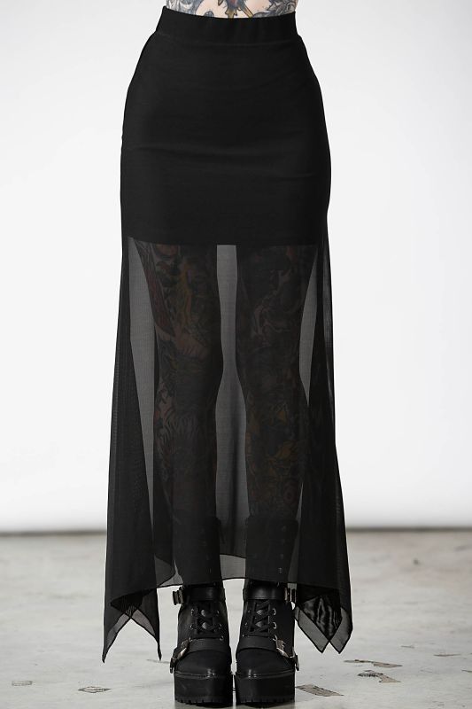 Killstar Death Star Maxi Rock im düsteren Style mit blickdichtem Unterrock und langem Mesh Rock
