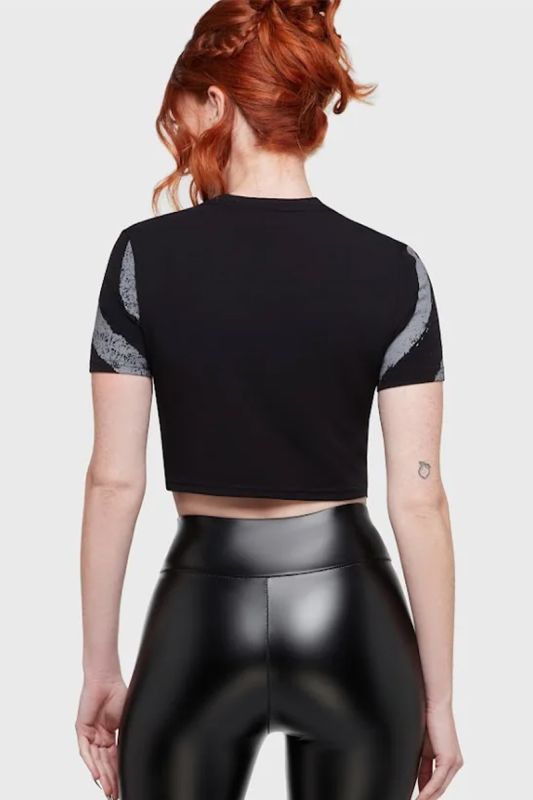 • bauchfreier Schnitt mit kurzen Ärmeln