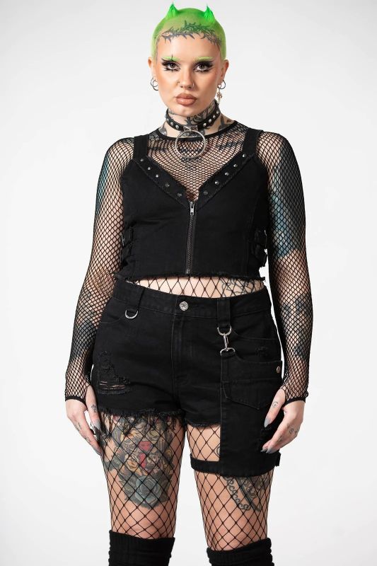 Killstar Mysteries Zip Top im sexy Style mit tiefem V-Ausschnitt und kurzem Reißverschluss