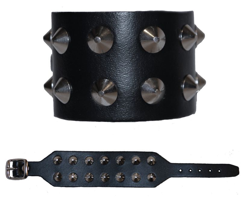 Nietenarmband im Gothic Style aus Kunstleder mit zwei Reihen silberfarbener Spitznieten nickelfrei