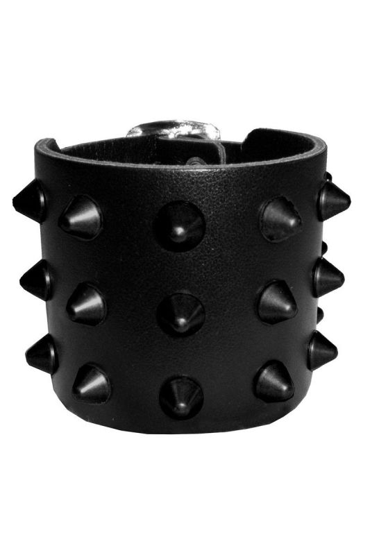 Nietenarmband im Gothic Style aus weichem Kunstleder mit drei Reihen schwarzer Spitznieten im düsteren Look