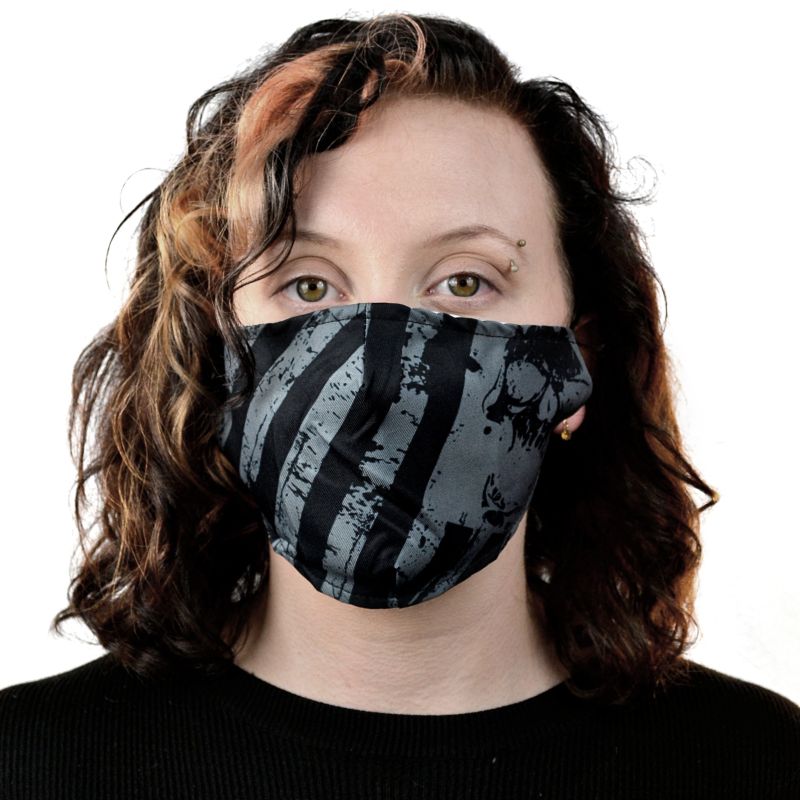 Poizen Industries Stripes Maske im Schwarz/Grau gestreiften Used Look mit elastischen Ohrschlaufen