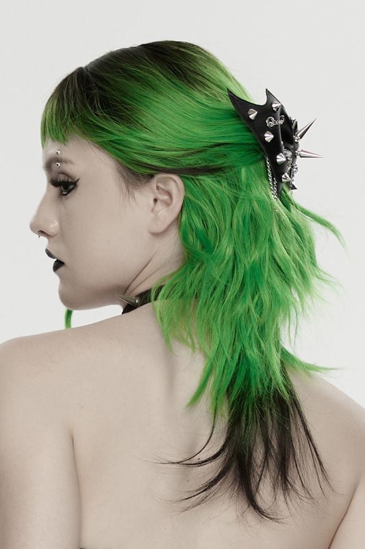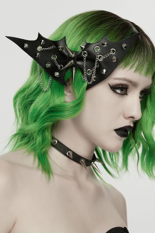 Punk Rave Nightfang Batwing Haarspange - Nieten, Ketten und Dark Attitüde