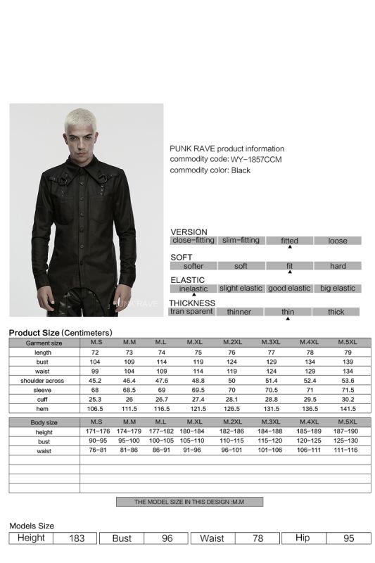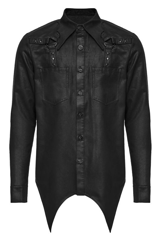 Das Ashen Command Hemd von Punk Rave verbindet düstere Eleganz mit einer klaren, autoritären Ästhetik. Der matte Stoff in Lederoptik erzeugt einen markanten Gothic-Look, während die strukturierten Schulterdetails mit Nieten und Riemen einen subtilen Military- und Industrial-Einfluss einbringen. Der asymmetrisch verlängerte Saum verleiht dem Hemd eine moderne, aggressive Silhouette, die sich deutlich von klassischen Schnitten abhebt.