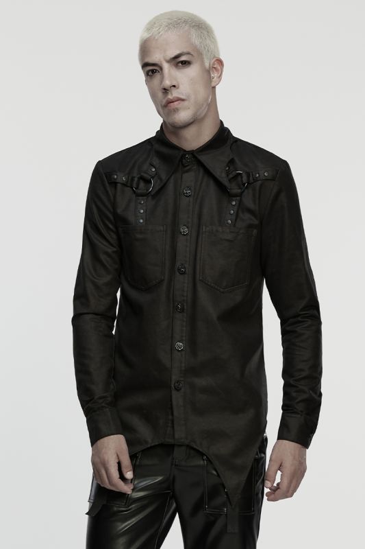 Punk Rave Ashen Command Hemd – Düsteres Gothic-Hemd mit Industrial- und Military-Attitüde