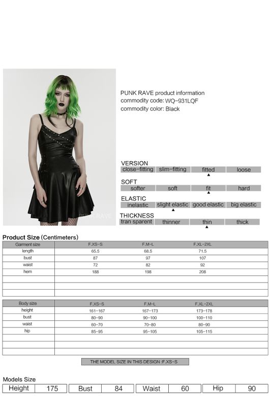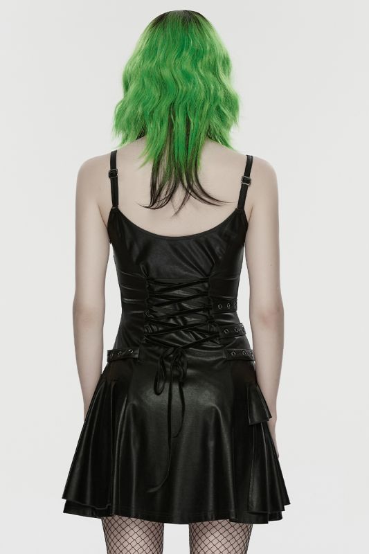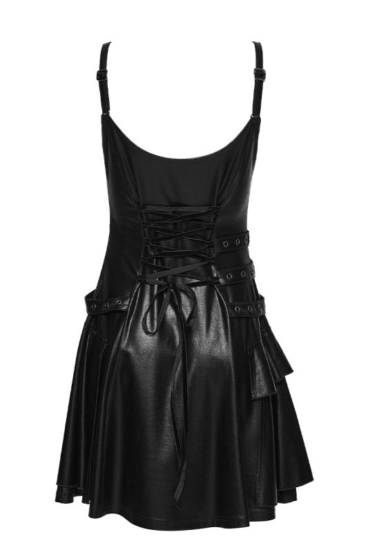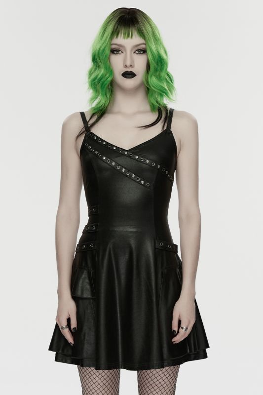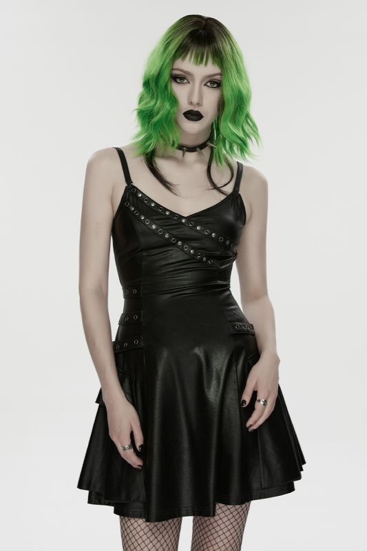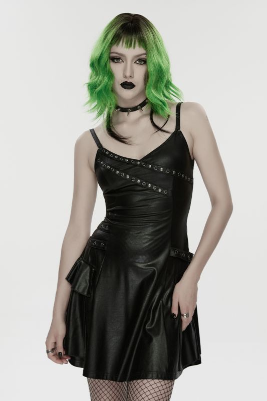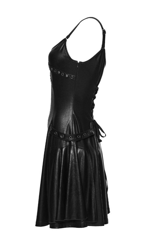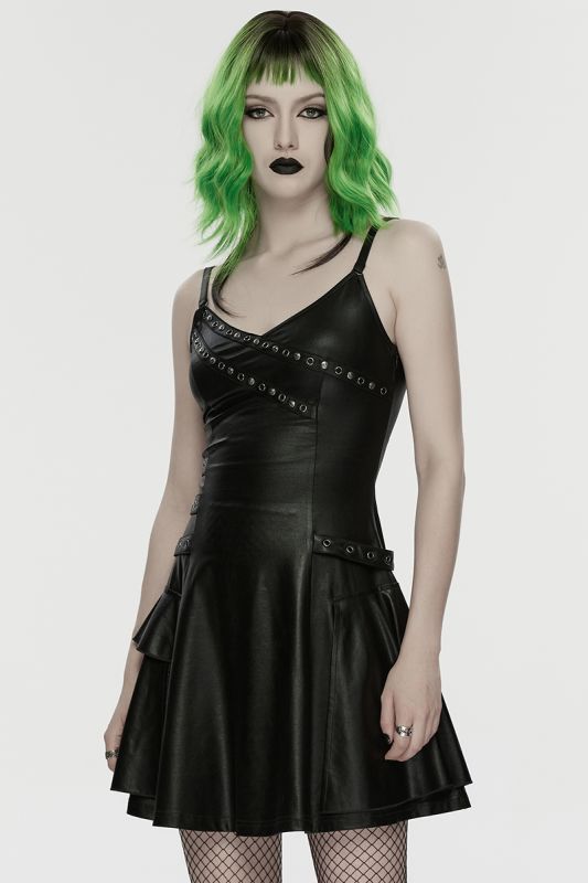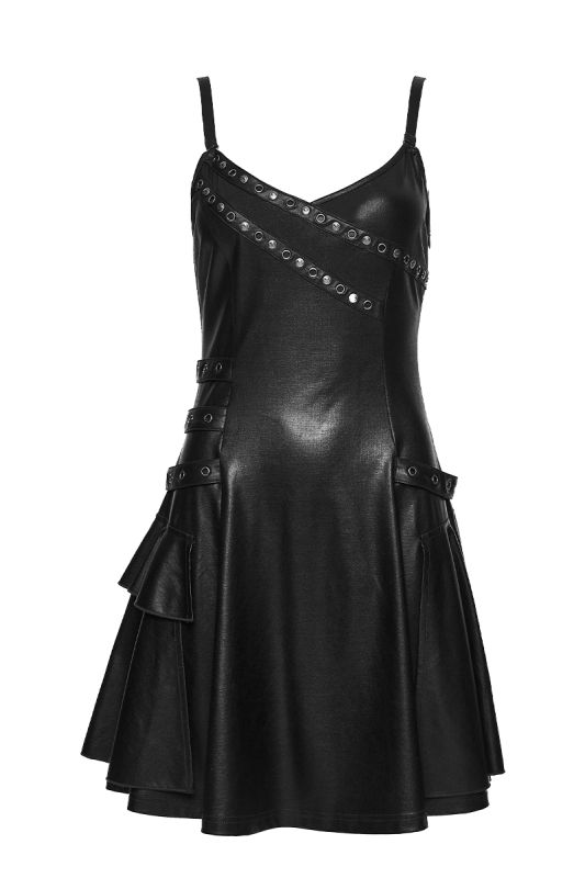 Punk Rave Void Siren – Gothic Kunstleder-Kleid mit Nietenakzenten und figurbetonter Silhouette