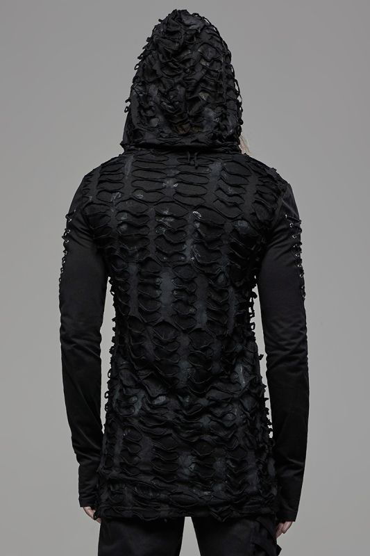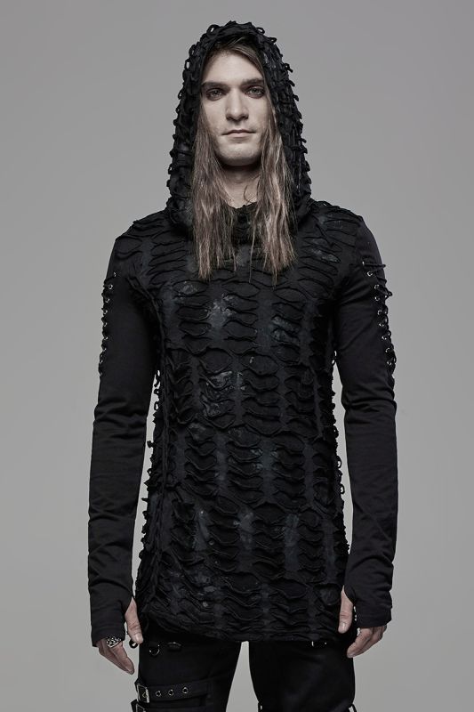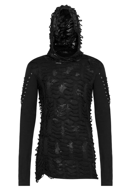 Punk Rave Mystery Longsleeve im Destroyed Look mit sexy Schnürung und Oversized Kapuze