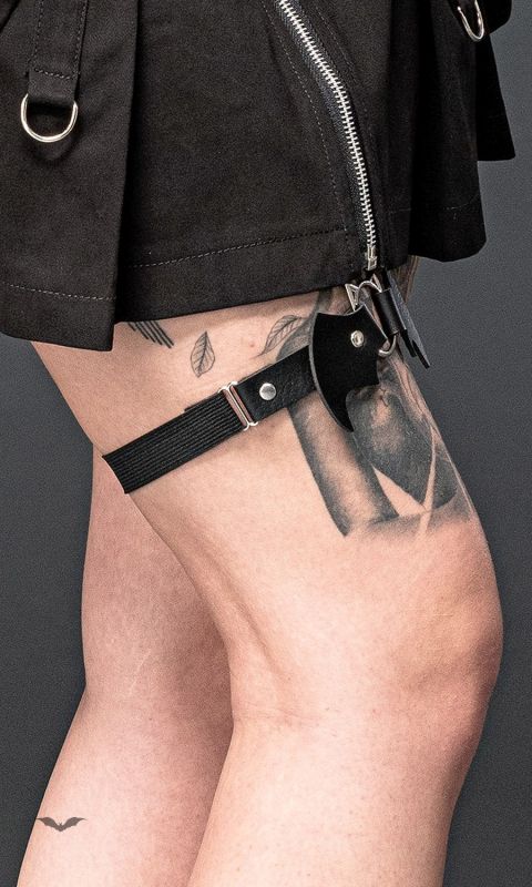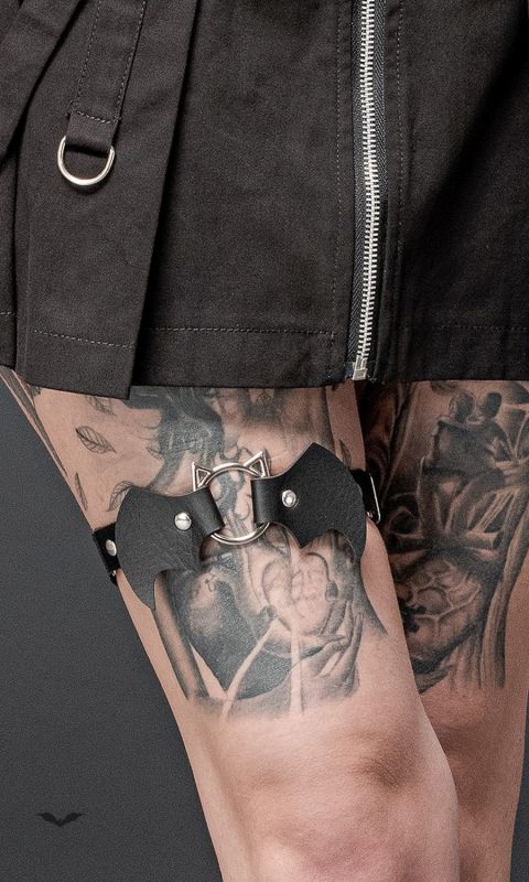 Mit diesem Queen of Darkness Holster, erschaffst du ein höllisches Gothic Outift. Das wundervolle, schaurig schöne Gothic Accessoire, ist die ideale Ergänzung, für deinen eigenen Gothic Style. Das Beinholster besteht aus einem elastischem Band, für die optimale Passform und den perfekten Tragekomfort. Die niedlichen Fledermaus Flügel bestehen aus Kunstleder und sind mit dem Teufelsring verbunden. Auf der Rückseite sorgt ein elastisches Strumpfband dafür, dass das Beinholster nicht verrutscht. Das Holster ist größenverstellbar, um dir trotz Einheitsgröße einen idealen Sitz zu gewährleisten. Das Highlight ist der gehörnte Ring oder auch Teufelsring genannt. Er bildet die Mitte und macht dich und das Holster definitiv zum diabolischen Blickfang. Dein neues Bein Harness lässt sich ideal zu Miniröcken, kurzen Kleidern oder zu Hotpants kombinieren. Es lässt sich höllisch gut mit Strümpfen und Strumpfhosen stylen und bringt sogar den Teufel um den Verstand.