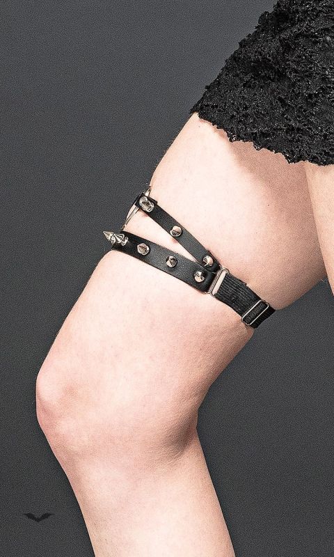 Queen of Darkness Bein Holster Spike Heart im sexy Style mit Nieten auf doppeltem Band und Herz Ring