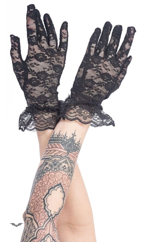 Queen of Darkness Flower Lace Handschuhe - Gothic Spitzen Handschuhe mit eleganten Rüschen am Saum