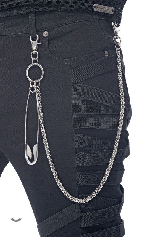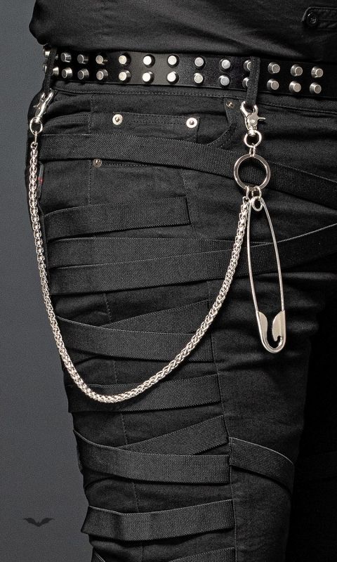 Dieses Queen of Darkness Schlüsselkette, definiert deinen Gothic Alltag neu. Eine lässige Schlüsselkette und ein diabolischen Statement, das bei jeder Gelegenheit, einen grandiosen Eindruck macht. Die Queen of Darkness "Safety Pin" Schlüsselkette, ist dein rockiger Begleiter und sorgt für Sicherheit in teuflischer Perfektion. Mit der silberfarbenen Kette und der dämonischen Sicherheitsnadel, bist du jederzeit bestens gestylt. Zwei Karabinerhaken lassen sich an den Gürtelschlaufen deiner Hose oder deines Rocks einhaken und bringen deine Wertsachen in Sicherheit. Ob Geldbörse oder Schlüssel, diese robuste Kette hält was sie verspricht. Für einen extra lässigen Style, ist ein großer Ring in das coole Design integriert, von welchem sich alle Elemente aus verteilen. Er bildet das höllische Zentrum von diesem außergewöhnlichen Gothic Accessoires. Auch als Deko an deiner Tasche oder am Rucksack sorgt die Geldbörsenkette für sündhaft geniale Auftritte. Ein echter Allrounder, der zu jedem Outfit und jeder Gelegenheit passt. So vielseitig wie deine dunkle Seele selbst.