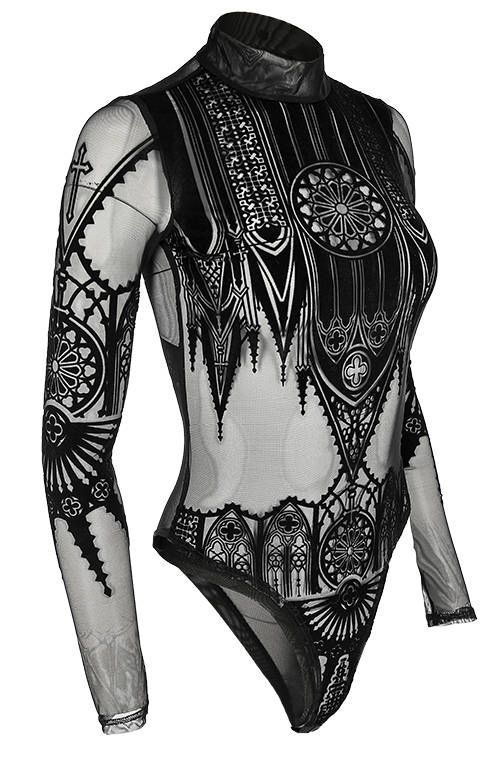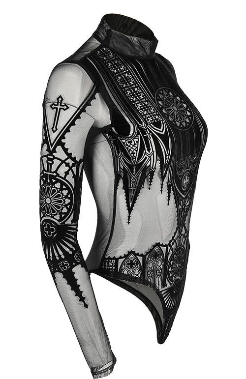 Restyle Inverted Cathedral Mesh Body aus transparenten Mesh mit teuflischem Kathedralen Motiv im sexy Style