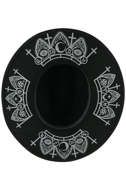 Dieser magische Restyle Hut ist der Hut des Wahrsagers. Ein Must Have für alle Hexen, denn keine Hexe ohne Hut. Er verleiht jedem Look eine rebellische Ausstrahlung und sorgt für ein sofortiges Drama. Der Fedora Hut ist aus fester Wolle erschaffen, was ihn super bequem und sehr stabil macht. Für optimale Passform und hohen Tragekomfort. Die breite Krempe macht den Restyle "Fortune Teller" Hut unverkennbar und zu einem düsteren Statement für deinen Gothic Style. Sie ist ca. 10cm breit und sorgt für einen zauberhaften Touch. Der Restyle Hut ist mit einem auffälligem Druck verziert. Er zeigt gotische Kreuze und Symbole. Inspiriert von gotischer Architektur und Astrologie, ist der schwarze Gothic Hexen Hut ein Eyecatcher für jeden Look. Zeig für was dein schwarzes Herz schlägt. Ob bei deinen alltäglichen Ritualen oder bei der heißen Feier zur nächsten Sonnenwende. Der Restyle Hut wird dich stets begleiten und jedem zeigen, dass hier eine bezaubernde Hexe ihren Ausflug macht. Ein Muss für Hexen, Zauberer und alle Mondkinder!
