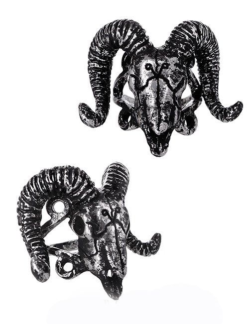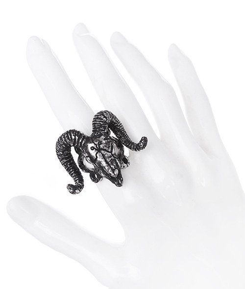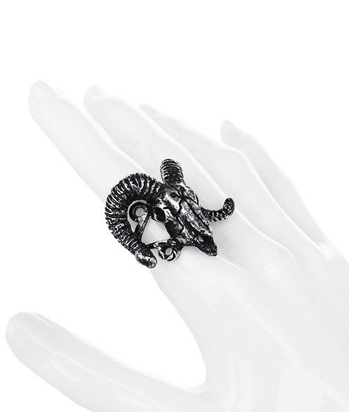 Restyle Ram Skull Ring mit mystischen Widder Schädel Design und antik silberfarbenen Look