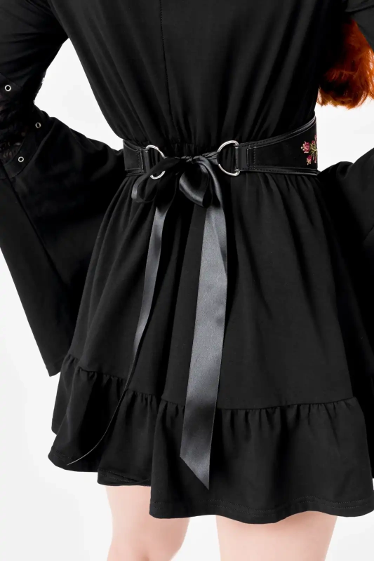 Restyle Gothic Taillengürtel Ceres mit floraler Stickerei und O-Ring Detail