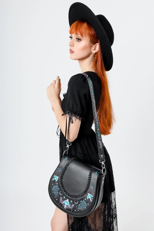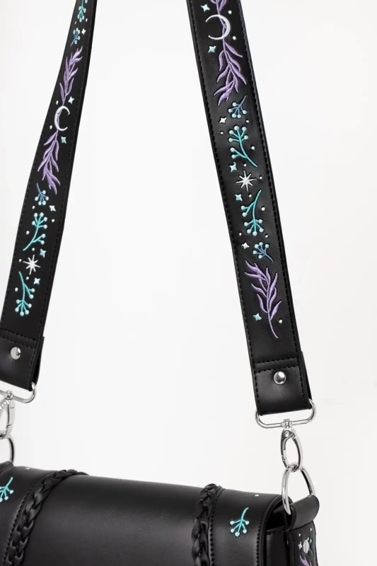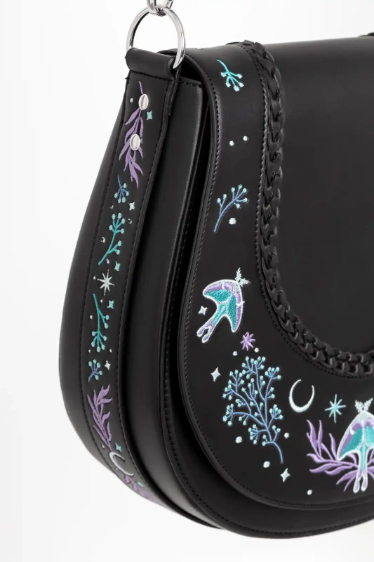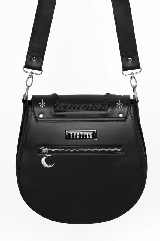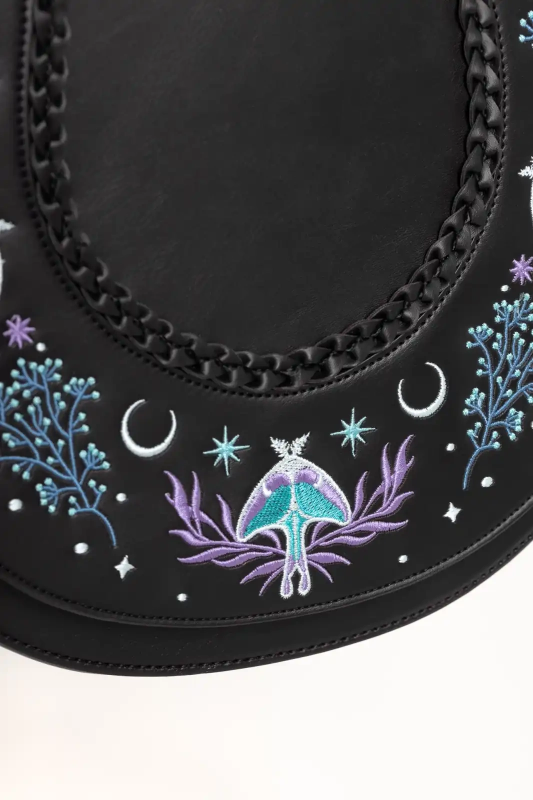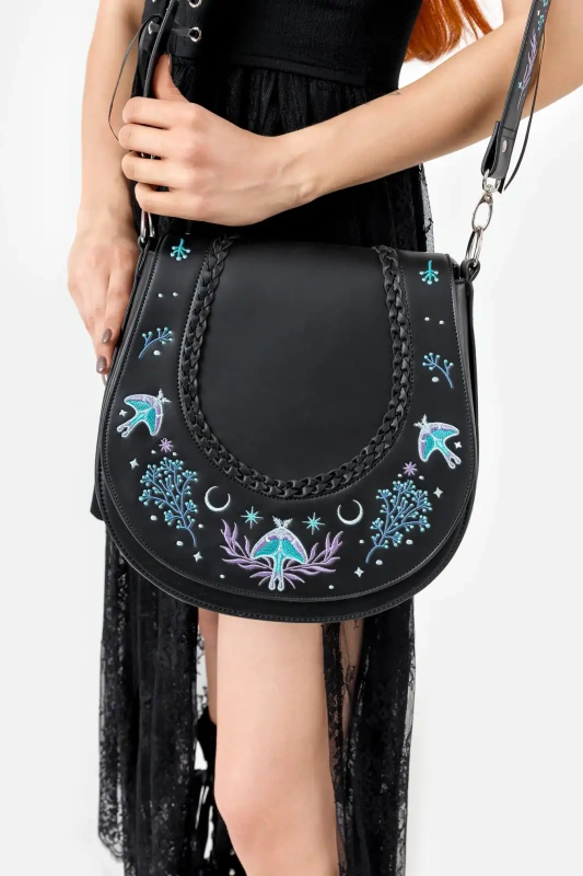 Restyle Gothic Moonglow Umhängetasche – Mystisch bestickt mit Mond- & Naturmotiven