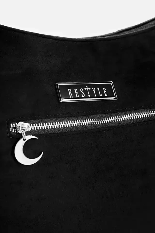 Diese ausdrucksstarke Gothic-Schultertasche von Restyle vereint mystische Symbolik mit handwerklich inspirierten Details und wird so zum markanten Statement-Piece für Dark-Romantic-, Witchy- und Alternative-Looks. Das tiefschwarze Kunstleder wird von kunstvollen Stickereien aus Motten-, Mondsichel- und floralen Motiven veredelt, die der Tasche eine geheimnisvolle, okkulte Ausstrahlung verleihen.