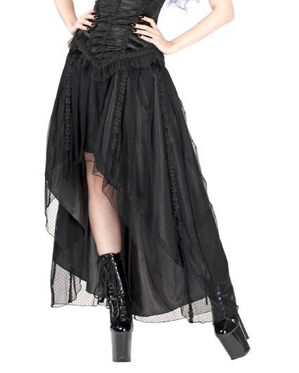 In diesem sexy Sinister Rock werden sie dir zu Füßen liegen. Lass dich zur Königin der Nacht küren und zelebriere einen Gothic Style, der nicht von dieser Welt ist. Im verführerischen Vokuhila-Schnitt beschworen, setzt der Sinister "Leyla" Rock neue Maßstäbe in der Gothic Mode. Denn die Harmonie aus düsterem Design und elegantem Schnitt, macht diesen Gothic Rock zu einem Must Have für viktorianische Outfits. Mach dich zum Blickfang mit diesem atemberaubenden Sinister Rock. Mit seinem Vokuhila-Schnitt umspielt er deine Figur und lässt deine Beine endlos lang wirken. Der Gothic Rock ist in einer A-Linie erschaffen und vorn knielang und hinten bodenlang geschnitten. Der elastische Bund sorgt mit dem Reißverschluss für perfekten Halt. Der Gothic Rock ist zweilagig gezaubert. Die untere Lage besteht aus einem blickdichten Satin-Unterrock, während die obere Lage aus feinem, transparentem Mesh besteht. Ein dezent gepunktetes Design betont deine feminine Aura. Die feine Spitzenborte mit kleinen Schleifen, rundet den grandiosen Look ab. Kombiniere den Gothic Maxi Rock mit eleganten Blusen, Top, Strumpfhosen und hohen Plateau Boots, für ein unwiderstehliches Outfit. Optimal für Festivals, Foto Shootings und eine traumhafte Gothic Hochzeit.