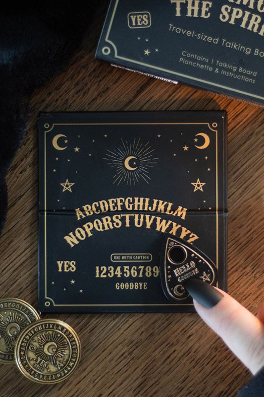Im Lieferumfang ist nur das Hexenbrett mit Box und Planchette enthalten. Alle anderen abgebildeten Artikel dienen nur zur Dekoration und werden nicht mitgeliefert!