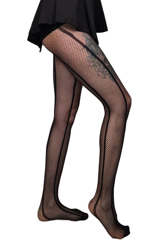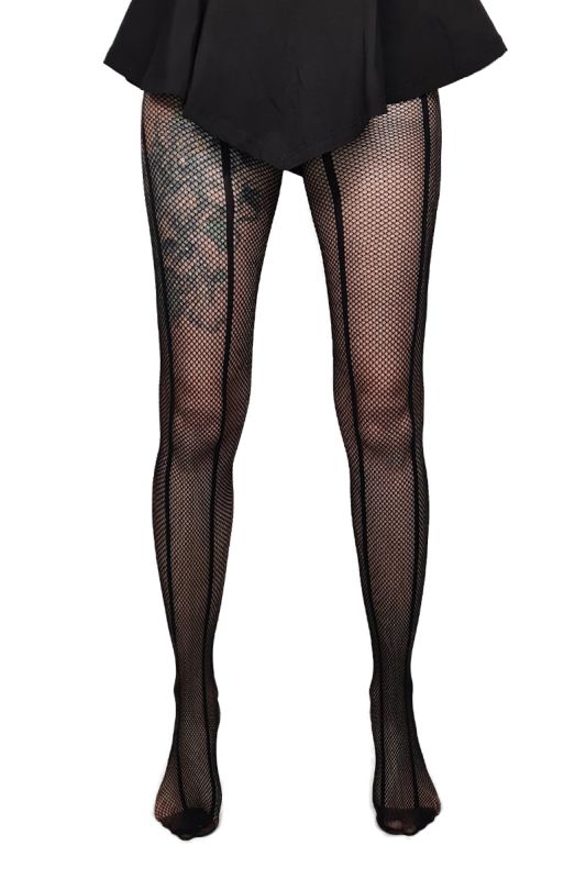 Gothic Strumpfhose Fishnet Stripes - Netzstrumpfhose mit schmalen Längsstreifen und feinem Netz