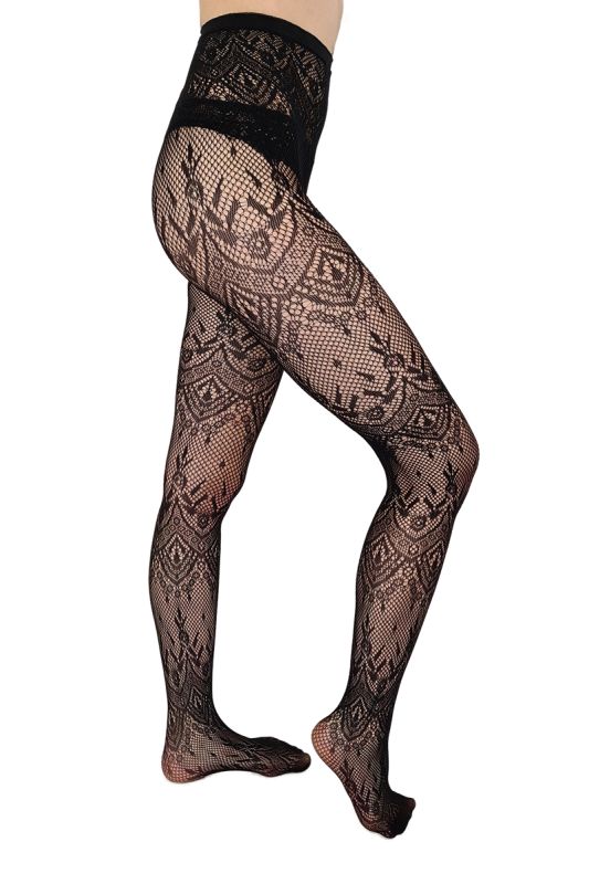 Gothic Strumpfhose Mandala - Die Netzstrumpfhose mit eleganten Ornamenten und Streifen im sexy Look