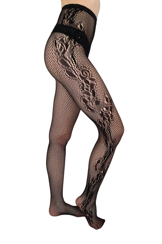 Gothic Netzstrumpfhose Side Ornaments Schwarz