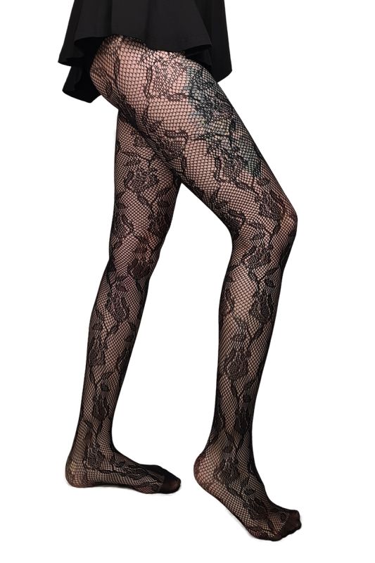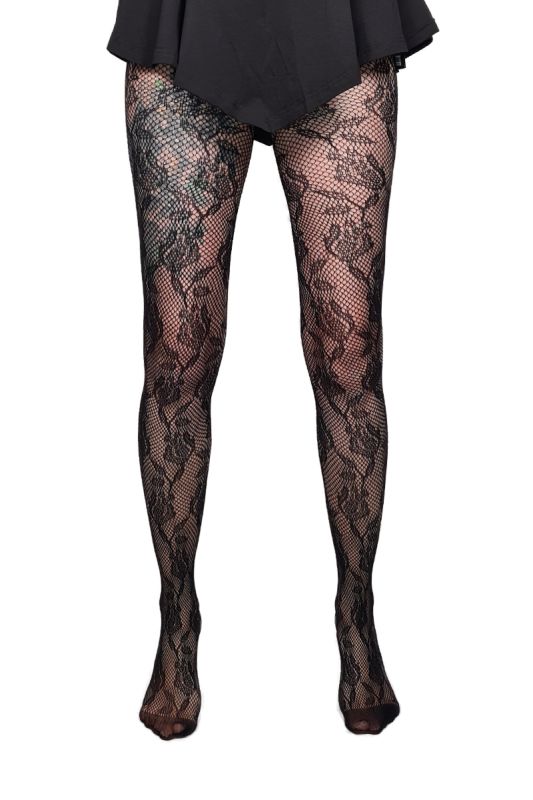 Gothic Strumpfhose Tendril - Netzstrumpfhose mit Blumenranken Muster und feinmaschigem Netz